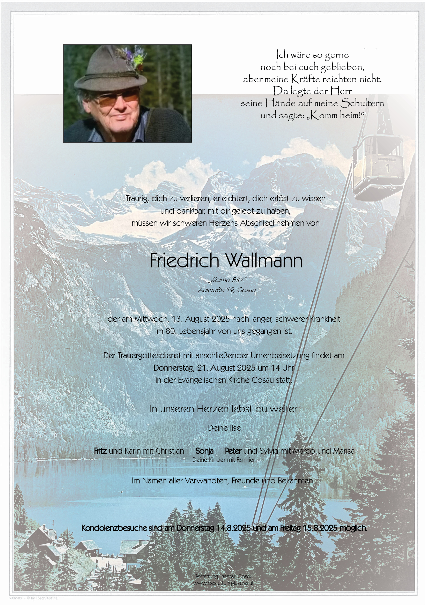 In schweren Zeiten kann es tröstlich sein, Gedanken und Erinnerungen zu teilen. Hier haben Sie die Möglichkeit, Ihre Anteilnahme auszudrücken, eine Kondolenz zu hinterlassen und eine Kerze zum Gedenken an den Verstorbenen zu entzünden.